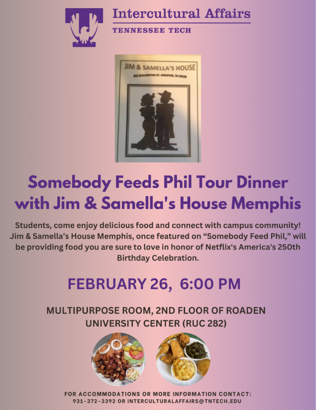 For accommodations or more information contact: 931-372-3392 or interculturalaffairs@tntech.edu